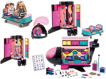 L.O.L. Surprise! O MÓJ BOŻE. lalki modowe i wszystkie inne L.O.L. Surprise! lalki. Samolot 4w1 zabierze naszą supergwiazdę B.B.s na ostateczny koncert – So Extra Tour. Wchodzą na pokład samolotu, gdzie B.B.s może odpocząć podczas długiego lotu. Następnie, kiedy wylądują, wyciągnij sekcję siedziska i jazda na koncert staje się niespodzianką. Ale nagle uderza inspiracja muzyczna i te królowe muszą nagrać nową piosenkę! Odłącz i obróć samolot na bok, aby stworzyć studio nagrań i mikser, w którym B.B.s może pracować nad swoim najnowszym remiksem.