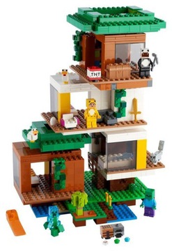 LEGO® Minecraft™ Nowoczesny domek na drzewie (21174) to duży, szczegółowy i niezwykle wszechstronny zestaw z czterema bogatymi w minecraftowe akcesoria pomieszczeniami, które można przebudowywać bez końca.