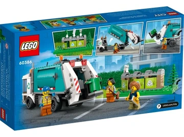 Ten zestaw dla dzieci od piątego roku życia LEGO® City Ciężarówka recyklingowa (60386) zawiera wiele realistycznych elementów, w tym centrum recyklingu z trzema pojemnikami. Ciężarówka ma przechylany podnośnik do opróżniania pojemników i podnoszoną platformę do wyładowywania. Dodaj jeszcze trzy minifigurki i kota, i można zaczynać zabawę.