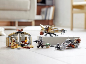 Dzieci mogą połączyć siły z Mandalorianinem i tuskeńskim rabusiem, by razem z nimi wykonywać misje na pustyni w zestawie LEGO® Star Wars™ 75299 Kłopoty na Tatooine. Zestaw zawiera śmigacz z miejscem na minifigurkę LEGO® i sakwę, w której może podróżować Dziecko. Jest w nim także kryjówka Tuskena do zbudowania oraz nowość na styczeń 2021 r. — balista dla tuskeńskiego rabusia. Odgrywanie ról W tej niezwykłej zabawce dzieci znajdą minifigurki LEGO Mandalorianina i tuskeńskiego rabusia, a także figurkę Dziecka (zwanego pieszczotliwie małym Yodą). Nie zabrakło świetnej broni, która dostarczy pomysłów na wiele godzin zabawy. Zestaw, który idealnie nadaje się na prezent dla małych fanów serialu Star Wars: The Mandalorian, zawiera łatwe instrukcje, z którymi nawet kompletny żółtodziób będzie mieć frajdę z budowania. Wspaniała galaktyka Grupa LEGO już od 1999 r. tworzy modele kultowych statków, pojazdów, miejsc i postaci z uniwersum Gwiezdnych Wojen. LEGO Star Wars to jedna z najpopularniejszych serii, obejmująca mnóstwo zestawów, które zachwycają fanów w każdym wieku.