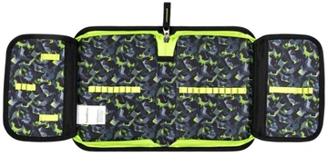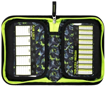 -ROZKŁADANE DWIE KLAPKI Z MIEJSCEM NA PRZYBORY SZKOLNE Z JEDNEJ STRONY ORAZ PLANEM LEKCJI I TABLICZKĄ MNOŻENIA Z DRUGIEJ.