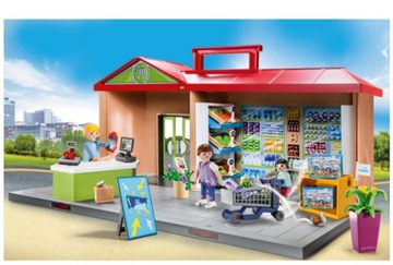 Przenośny sklep z warzywami 70320 to fantastyczny zestaw do zabawy z figurkami i elementami otoczenia. Zabierz swój sklep z wspaniałymi akcesoriami gdzie tylko chcesz, kompaktowy zestaw zamknięty jest w skrzyneczce. Posiada kompleksowe wyposażenie, w którym znajdują się półki do ekspozycji towarów, lada, waga, kasa, koszyk na kółkach oraz akcesoria tematyczne m.in. warzywa, owoce, konserwy, soki, itp. Zestaw można łatwo i wygodnie transportować, dzięki zamontowanemu na dachu uchwytowi, a składana konstrukcja sprawia, że można go szybko sprzątnąć, zamknąć i odstawić na półkę po zakończonej zabawie.