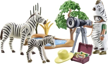 Zestaw z serii Wiltopia PLAYMOBIL wspierający zrównoważony rozwój z Sofią Palmer, zebrami, a także kostiumem do przebrania, aparatem fotograficznym i wieloma innymi dodatkami do odgrywania przygód na safari w dziecięcym pokoju.