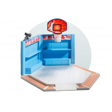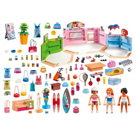 Pasaż handlowy to obszerny zestaw z kompleksowym wyposażeniem do wspaniałej zabawy w sklep. Stoiska oferują swoim klientom urozmaicony asortyment. W centralnym miejscu znajduje się elegancki butik z ubraniami, galanterią i biżuterią. Obok umieszczono sklep zoologiczny ze zwierzątkami domowymi, a także akcesoriami i karmą dla pupili. Nie zabrakło także sklepu sportowego z całym mnóstwem rozmaitego sprzętu. Zestaw zawiera 3 figurki Playmobil, które można przebierać oraz mnóstwo elementów wystroju oraz akcesoriów niezbędnych w pasażu handlowym.