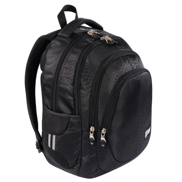Czterokomorowy plecak szkolny uszyty z materiałów najwyższej jakości, z dbałością o każdy szczegół. Model ten posiada dwie kieszenie wewnętrzne oraz dwie kieszenie zewnętrzne. Kieszenie wewnętrzne pokryte są polarem. Na uznanie w tym modelu, z pewnością zasługuje wyjście na słuchawki oraz organizer z zawieszką na klucze. Profilowane, ergonomiczne plecy z dodatkowym usztywnieniem, zwiększą komfort użytkowania, podobnie jak miękkie szelki z możliwością regulacji długości.