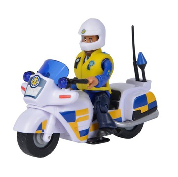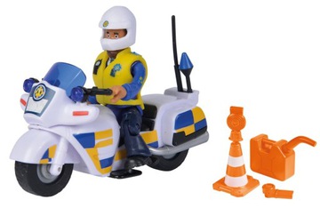 Strażak Sam Motor policyjny z figurką Malcolm 9251092. Zestaw dla miłośników bajki o dzielnym strażaku Samie. Nieustraszony Strażak Sam i jego drużyna znowu ruszają do akcji! W miasteczku Pontypandy pojawia się nowa postać – policjant Malcolm Williams. On i strażacy wezmą udział w wielu wspólnych akcjach ratunkowych. Malcolm, jak na policjanta przystało, będzie też tropił przestępców, którzy zakłócą spokój mieszkańców. Policjant Malcolm może błyskawicznie odpowiedzieć na wezwanie swoim policyjnym motocyklem! W zestawie biały motor z niebiesko-żółtymi refleksami, figurka policjanta z ruchomymi kończynami oraz akcesoria.